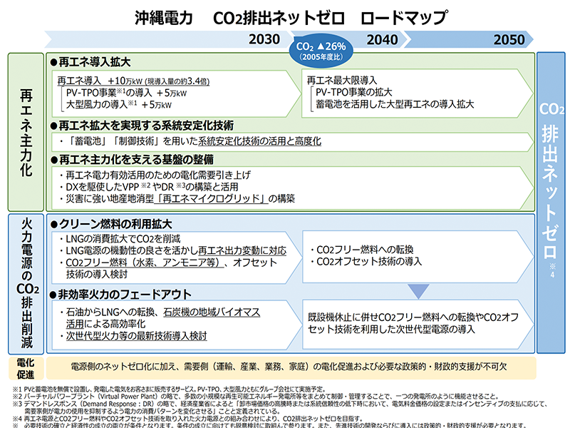 沖縄電力が「再エネ主力化」と「火力発電のCO2排出削減」という2つの方向性を掲げ、様々な施策を実施していくと発表。